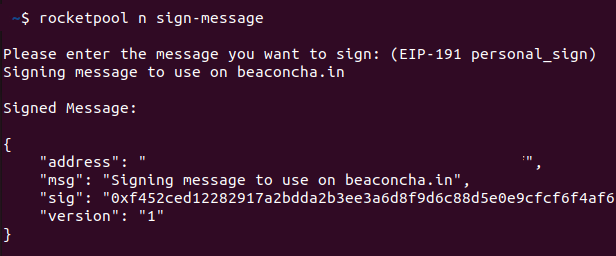 Copy the result from the sign-message command and paste it in the "Signature" field.