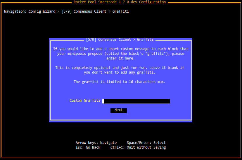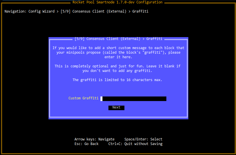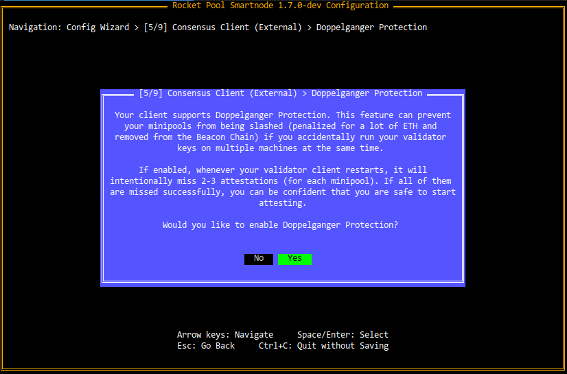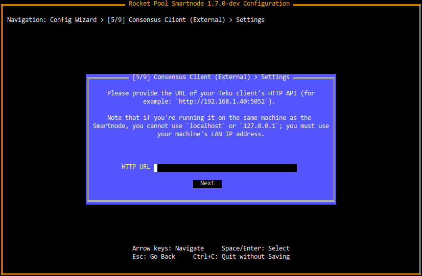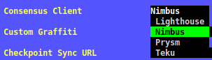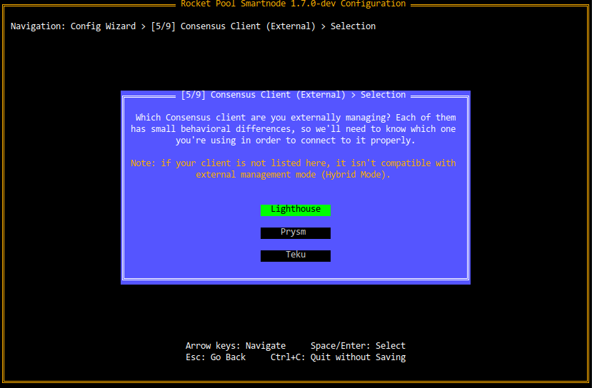 If you want the Smartnode to manage a Consensus client for you, the next screen will ask you to pick a client: