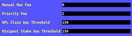 In this example, the RPL Claim Gas Threshold setting is currently selected (highlighted with a green box on the left-hand side of the screen).