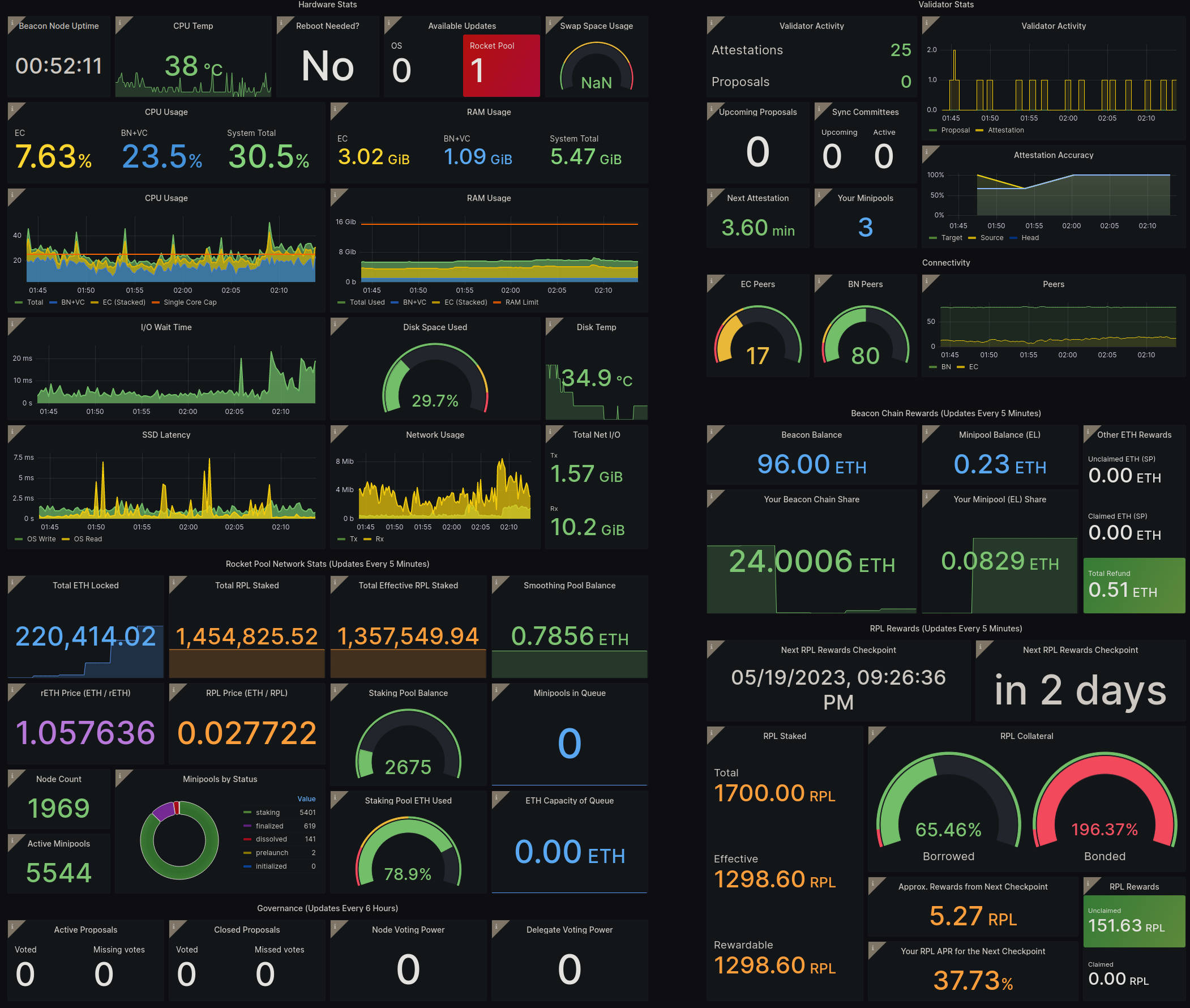 - Bottom left: details about the entire Rocket Pool network, for reference