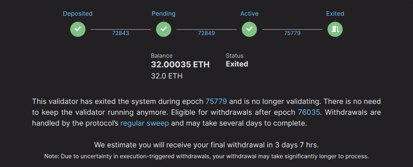 from your withdrawal balance. Please monitor the status of your node throughout the entire validator exit process.