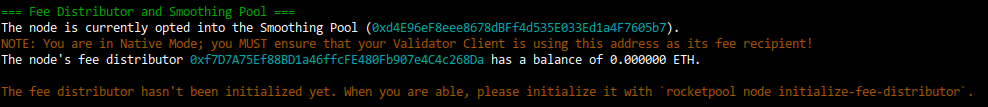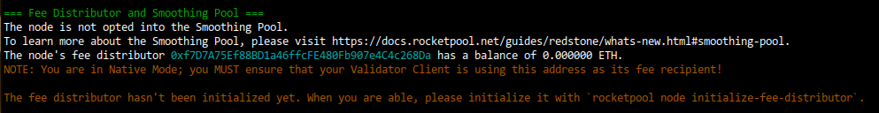 rocketpool node status, under theFee Distributor and Smoothing Poolsection.